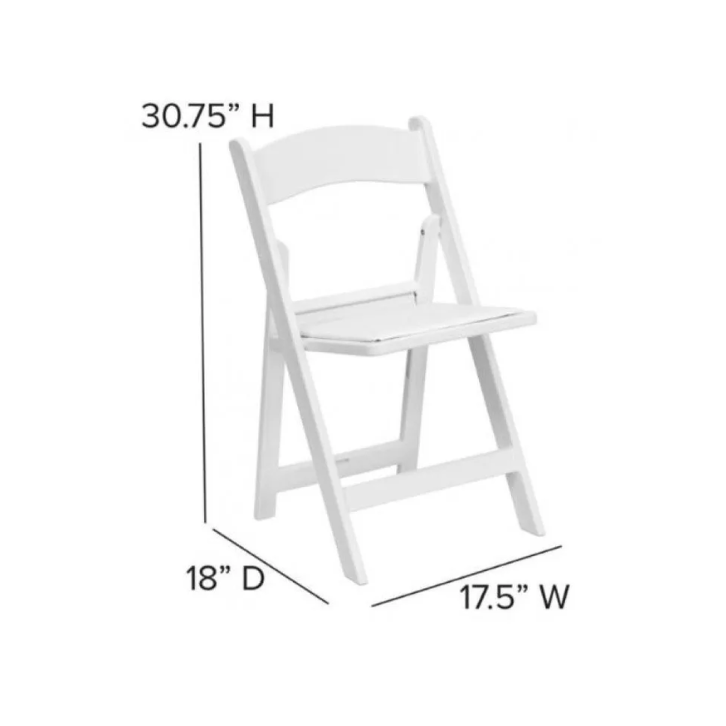 The resin folding chairs feature a resin frame with a padded seat.